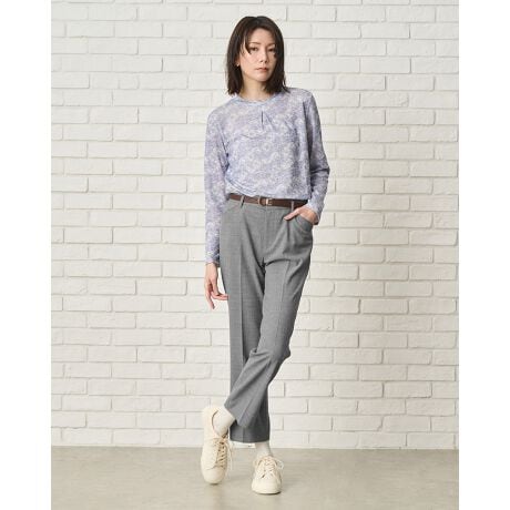 伸縮性に優れた2WAYストレッチ素材に接触冷感のキシリトール加工を施した春夏秋と3シーズン活躍する美シルエットパンツです。