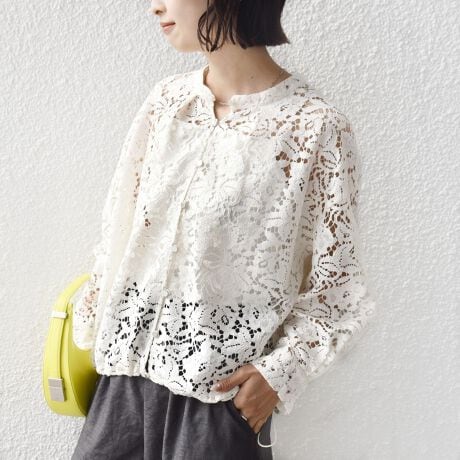 裾のドロストが程よくカジュアルなレースブラウス