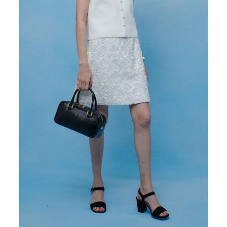 コンパクトな台形シルエットながら、シンプルなトップスやTシャツと合わせるだけで上品な印象に。