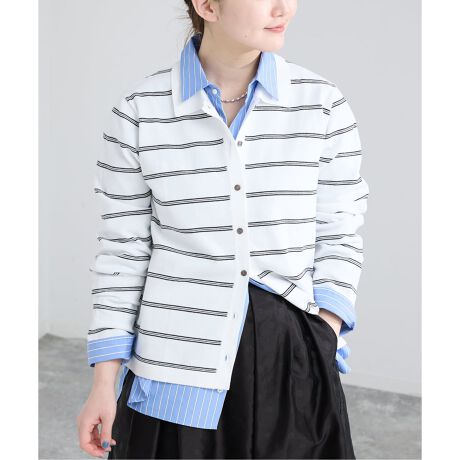 シャツのような前開き仕様で、羽織りとしてもトップスとしても着回しやすい一枚です。