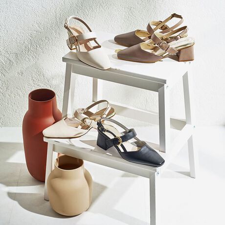 マルチに活躍する綺麗めなバックストラップパンプスは、足がすっきり見えるようにカットラインにもこだわった1足。華奢なストラップデザインと、太めのチャンキーヒールはシルエットを綺麗に見せながら安定感があり、甲と踵のストラップはバックルで調整ができるのも嬉しいポイント。幅広いコーディネートに合わせやすいベーシックなカラバリで履き回し力抜群な1足。サンプルにて撮影をしておりますので、中敷色、ロゴ色、裏地の色の仕様に変更がある場合がございます。あらかじめご了承ください。