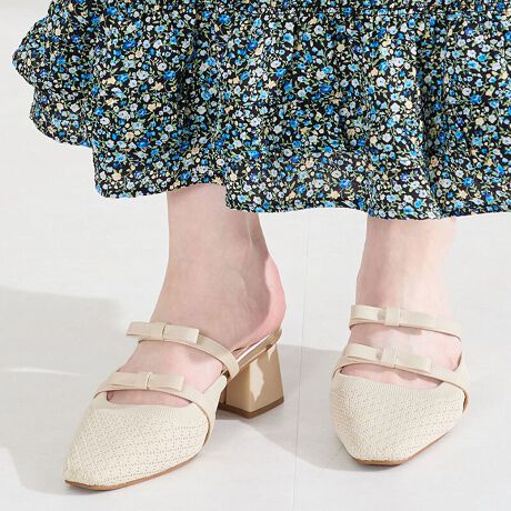 【26春夏新作】ダブルリボンニットミュールパンプス/61111