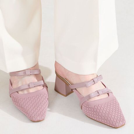 【26春夏新作】ダブルリボンニットミュールパンプス/61111