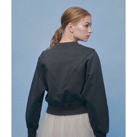 大胆なVカットの切り替えが目を引く、構築的なデザインのトレーナー。