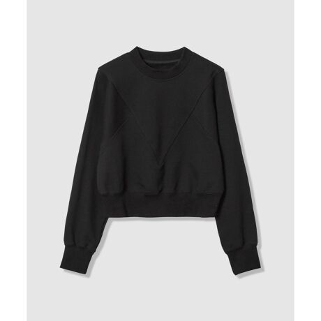 大胆なVカットの切り替えが目を引く、構築的なデザインのトレーナー。