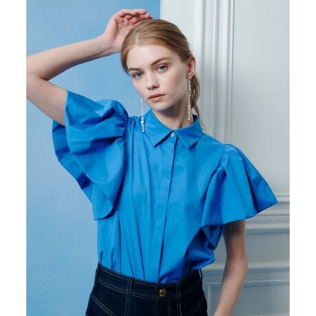 トレンドのバルーンディテールを取り入れたシャツブラウス。