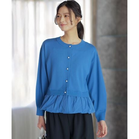 ■デザイン・裾に異素材を使ったバルーン仕様が目を惹くニットカーディガンは、前後着用可能な2WAY仕様です。・シンプルなニットカーデに立体感のあるバルーンシルエットを組み合わせることで女性らしさを演出。・絶妙なボリューム感がスタイリングに洗練された大人の華やかさを与えてくれます。・体のラインが出にくいルーズフィットなシルエットで、裾周りの収まりがよい長すぎない着丈が、どんなボトムとも合わせやすいバランスに仕上がっています。