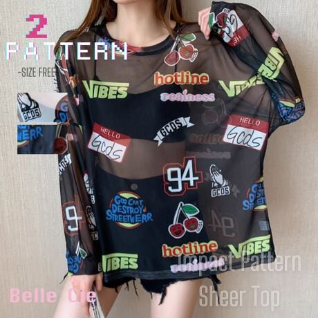 -大人可愛い透け感にガチャガチャとした総柄がとってもかわいくておしゃれなトップスです。