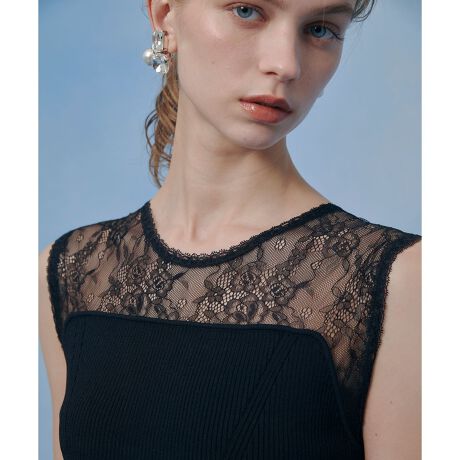 ランジェリーライクなレースをあしらった、センシュアルなムード漂うトップス。