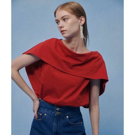 デコルテを立体的に飾る、ケープレットのような大きな衿が印象的な、クラシックムード漂うカットソープルオーバー。