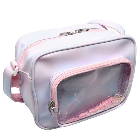 入園・入学準備品!ショルダータイプの通園バッグ・幼稚園バック。キラキラのビニールの外ポケットにはキラキラのスパンコールやビーズが入ってます!女の子が大好きなキラキラで、トレンド感のある通園バック。内側にもポケットがあります。【アイテム】 雑貨 カジュアル お洒落 オシャレ かわいい 可愛い 普段着 デイリーウェア お出かけ 子ども こども 女児 女の子 ガールズ キッズ ベビーサイズ トドラーサイズ 幼稚園 保育園 小学校 通園 通学 小学生 遠足 旅行 2026年春夏物新作 丸高衣料 小物 入園入学準備品 ピンク ブルー 青色 水色 キッズフォーレ