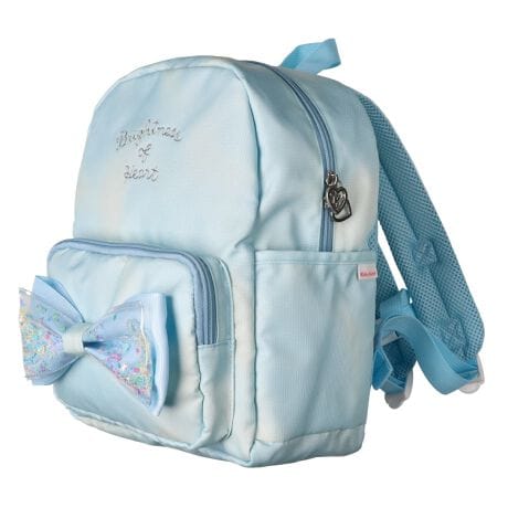 撥水機能付きのポリエステルを使用したリュック。前に留め具も付いているので、肩紐もずり落ちにくい仕様です。背中と接する面がエアメッシュになっているので、肌あたりが柔らかく通気性◎内ポケットにはお名前ネームタグ有り。ビニールのリボンにはキラキラのスパンコールが入っており、トレンド感のあるリュックです。【アイテム】 雑貨 カジュアル お洒落 オシャレ かわいい 可愛い 普段着 デイリーウェア お出かけ 子ども こども 女児 女の子 ガールズ キッズ ベビーサイズ トドラーサイズ 幼稚園 保育園 小学校 通園 通学 小学生 遠足 旅行 2026年春夏物新作 丸高衣料 小物 りぼん ピンク サックス 水色 キッズフォーレ