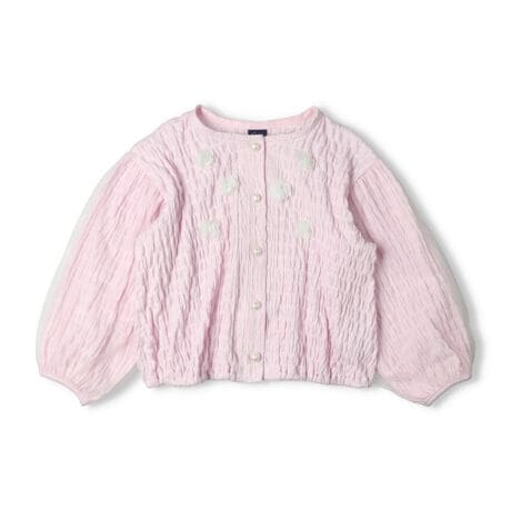 袖はチュールの重ね使いで華やかなイメージ。身頃にお花のモチーフやパール風のボタンもガーリーな印象で可愛い!ワンピースにもTシャツにも合わせやすいカーディガン。【アイテム】トップス シンプル ガーリー フェミニン カジュアル お洒落 オシャレ かわいい 可愛い 普段着 デイリーウェア お出かけ着 お外着 お外遊び着 子ども こども 女児 女の子 ガールズ キッズ ベビーサイズ トドラーサイズ 幼稚園 保育園 小学校 通園 通学 小学生 2026年春夏物新作 丸高衣料 ロングスリーブ 長袖 オフホワイト 白色 ピンク クレセント