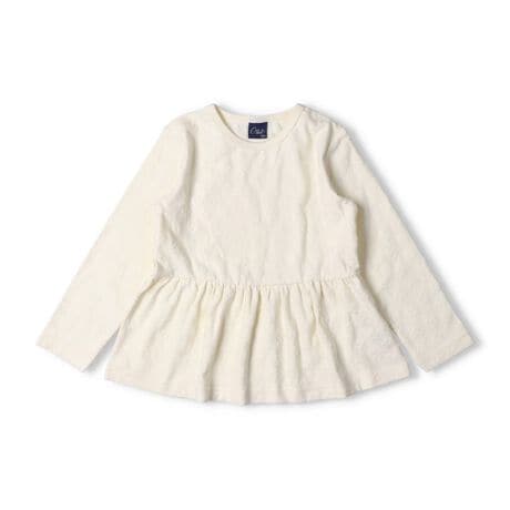 無地ライクに着られるお花柄ジャガードの長袖Tシャツ、ロンT。伸びがよく、着やすいアイテム。【アイテム】トップス シンプル ガーリー フェミニン カジュアル お洒落 オシャレ かわいい 可愛い 普段着 デイリーウェア お出かけ着 お外着 お外遊び着 子ども こども 女児 女の子 ガールズ キッズ ベビーサイズ トドラーサイズ 幼稚園 保育園 小学校 通園 通学 小学生 2026年春夏物新作 丸高衣料 ロングスリーブ 長袖 フラワー ブラック 黒色 オフホワイト 白色 クレセント