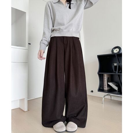 落ち感のあるコーデュロイ素材で仕上げた、タック入りワイドパンツ。
