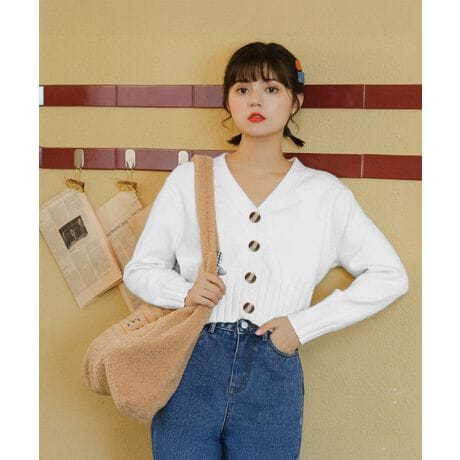 デコルテラインを美しく引き立てるVネックニットカーディガン。