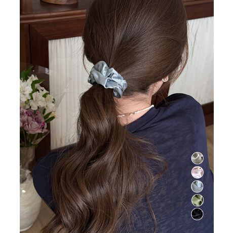 上品な光沢感のあるサテン素材を使用した、プリーツデザインのシュシュです。