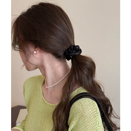 上品な光沢感のあるサテン素材を使用した、プリーツデザインのシュシュです。