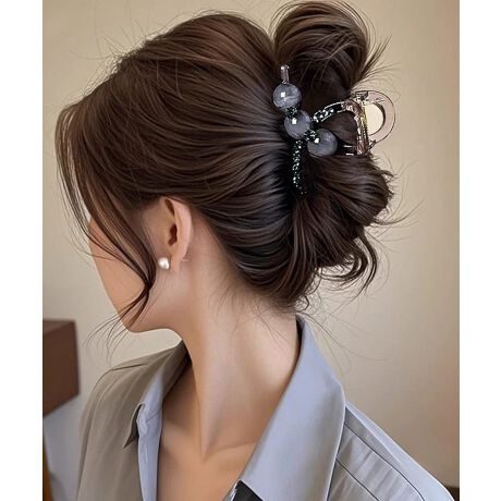 上品なビーズと繊細なラインストーンをあしらった、中サイズのバンスクリップです。