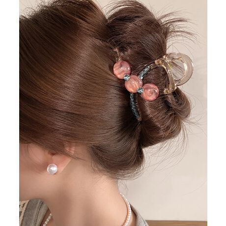 上品なビーズと繊細なラインストーンをあしらった、中サイズのバンスクリップです。