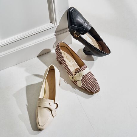 スタイルアップと履きやすさを両立したヒールローファーは、フロントに施したベルトと丸みのあるバックルが、きちんと感のあるコーデにぴったり。つま先はすっきりとしたスクエアトゥで、足元をきれいに見せてくれるデザイン。ブラウンは千鳥柄にラメ糸を織り込むことで、さりげないアクセントに。通勤からお出かけまで幅広いシーンで活躍する1足。サンプルにて撮影をしておりますので、中敷色、ロゴ色、裏地の色の仕様に変更がある場合がございます。あらかじめご了承ください。