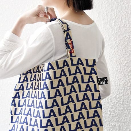 キャメルは存在感のあるタイガーモチーフ、ブルーは爽やかなLAロゴが全面にあしらわれた、遊び心あふれるトートバッグ。