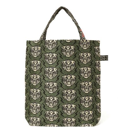 キャメルは存在感のあるタイガーモチーフ、ブルーは爽やかなLAロゴが全面にあしらわれた、遊び心あふれるトートバッグ。