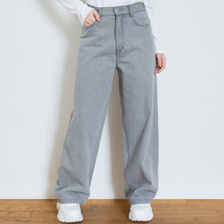 存在感抜群のストーンデザインがコーディネートを格上げするデニムパンツです。