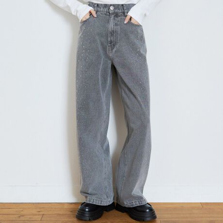 存在感抜群のストーンデザインがコーディネートを格上げするデニムパンツです。