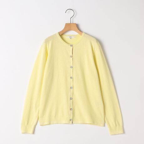 無地のカーディガンにリバティ柄のボタンを掛け合わせた上品なデザイン。