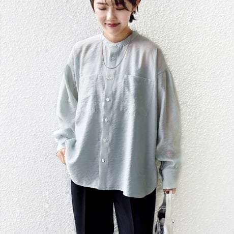 程よくシアーな素材感も春らしく、エアリーな素材感の為、たっぷりと贅沢に生地の分量を使ったシャツですが軽さのある仕上がりになっています。
