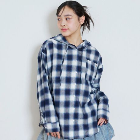 チェック柄がコーディネートのアクセントになったパーカです。シャツ感覚で軽く羽織れるデザインで、季節の変わり目にも活躍します。フードつきなのでカジュアルさがあり、デニムやワイドパンツなど幅広いボトムスと好相性。レイヤードスタイルにも取り入れやすい、着回し力の高い一枚です。