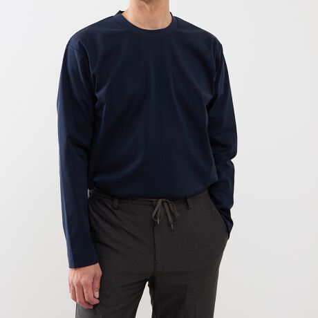 程よくゆとりのあるスタンダードシルエットで、窮屈感なく快適に着用できます。体型を選ばず、幅広い方にフィットする定番の形。