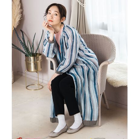 ・ドット×ストライプの柄が縦ラインを強調