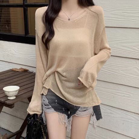 Knit/透かしニットゆるトップス ST/No.22009