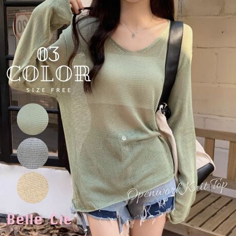 Knit/透かしニットゆるトップス ST/No.22009