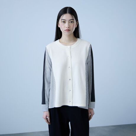 ニットカーディガンとブラウスをドッキングさせたデザイントップスです。