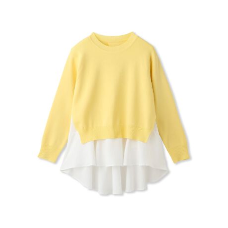 つややかな糸を使用し、ハイゲージで編立てたニットプルオーバーとペプラムラインのテキスタイルインナーがセットになったレイヤードアイテムです。