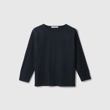 シンプルなボートネックのプルオーバーは、インナーにも一枚着にも活躍するデザイン。