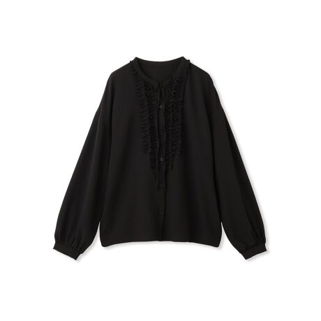 前立て部分に寄り添って2列ずつミニフリルとナローコードを配置したデザインで、リボン結びでフェミニンに、コードを垂らして抜け感のある着こなしに。