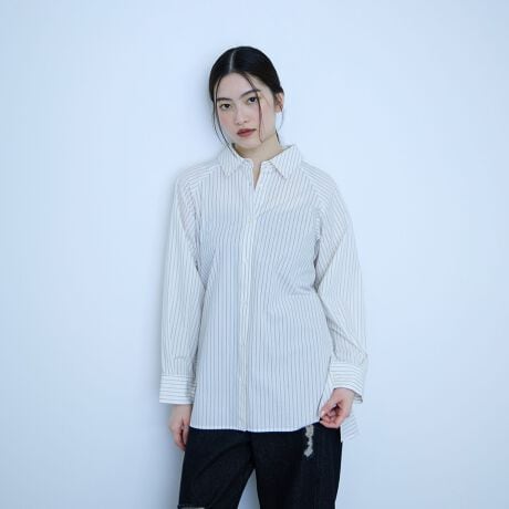 やや長めの着丈に設定し、後ろ襟下にシングルタックを入れて、ゆとりの感じられるサイズ感に。