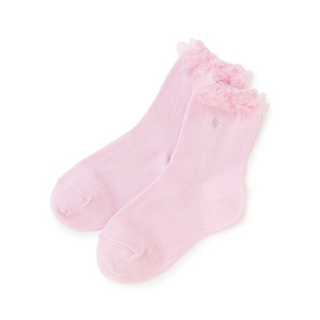 華やかな印象のオーガンジーフリルとMPロゴ刺しゅうのソックスです。カジュアルからフォーマルまで、幅広いスタイルに取り入れられるシンプルな一足。同じデザインでサイズ違いのソックス(品番:6361434)をご用意しています。姉妹でお揃いにするのもおすすめです。【リンク】お揃い品番:6361434