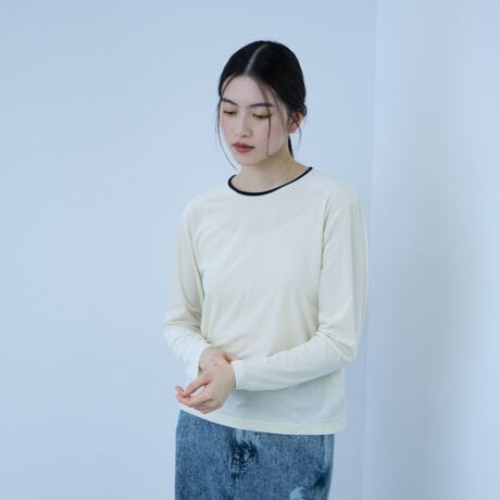 リンガーTシャツをベースにした、シアーなロングスリーブ カットソー