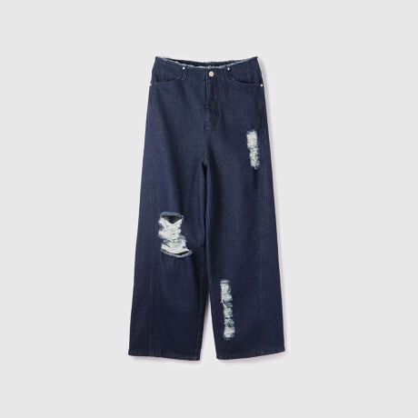 部分的に施した控えめなダメージ加工が、程よい抜け感を添える一本です。
