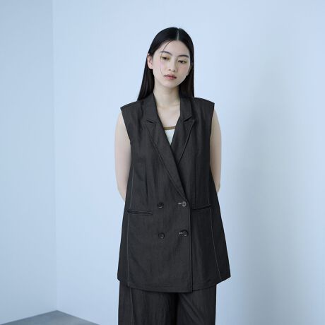 しなやかさと程よいハリ感があるテキスタイルと好相性でシーズンレスに着回しが効くテーラーベストはコーディネートのアクセントにおすすめです。