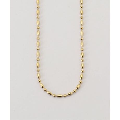 形の異なるビーズを掛け合わせたボールチェーンネックレス。