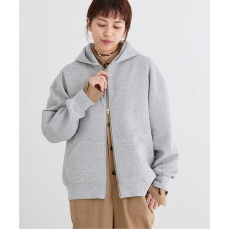 軽さと程よいハリ感を兼ね備えた、厚すぎないダンボールニット素材のフーディ。