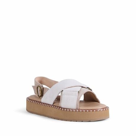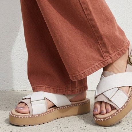 大人カジュアルを格上げ。本革仕様の厚底クロスストラップサンダル