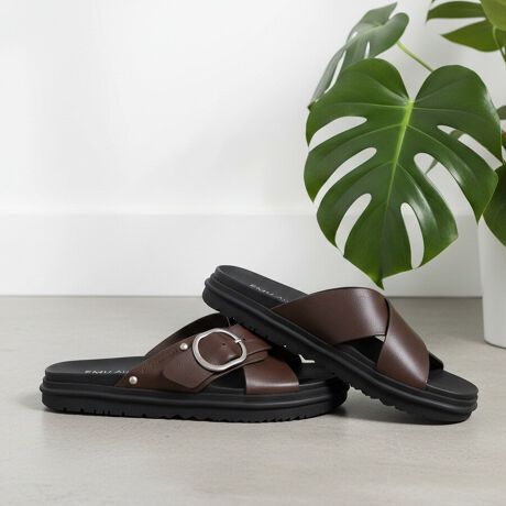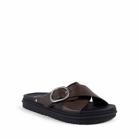 シンプルだからこそ、素材の良さとシルエットの美しさが際立つサンダル。 太めのレザーストラップをクロスさせたボリュームのあるデザインは足をしっかりとホールドしながら甲を美しく見せてくれる計算されたバランスが魅力です。