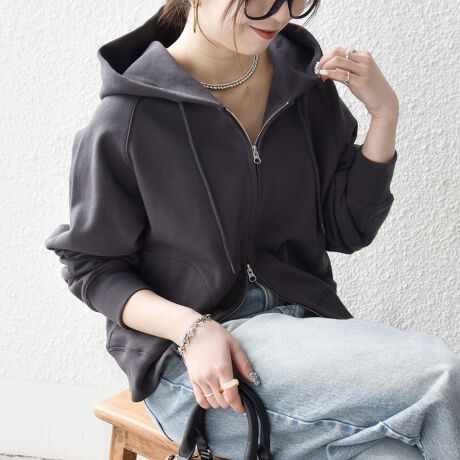 インにシャツやカットソーを重ねてももたつかず、ダブルジップを下から少し開ければ、着こなしに奥行きをプラスできます。